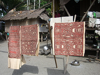 | タパ作りに挑戦 | 木の葉の染料で色つけを行う | 出来上がったタパ |